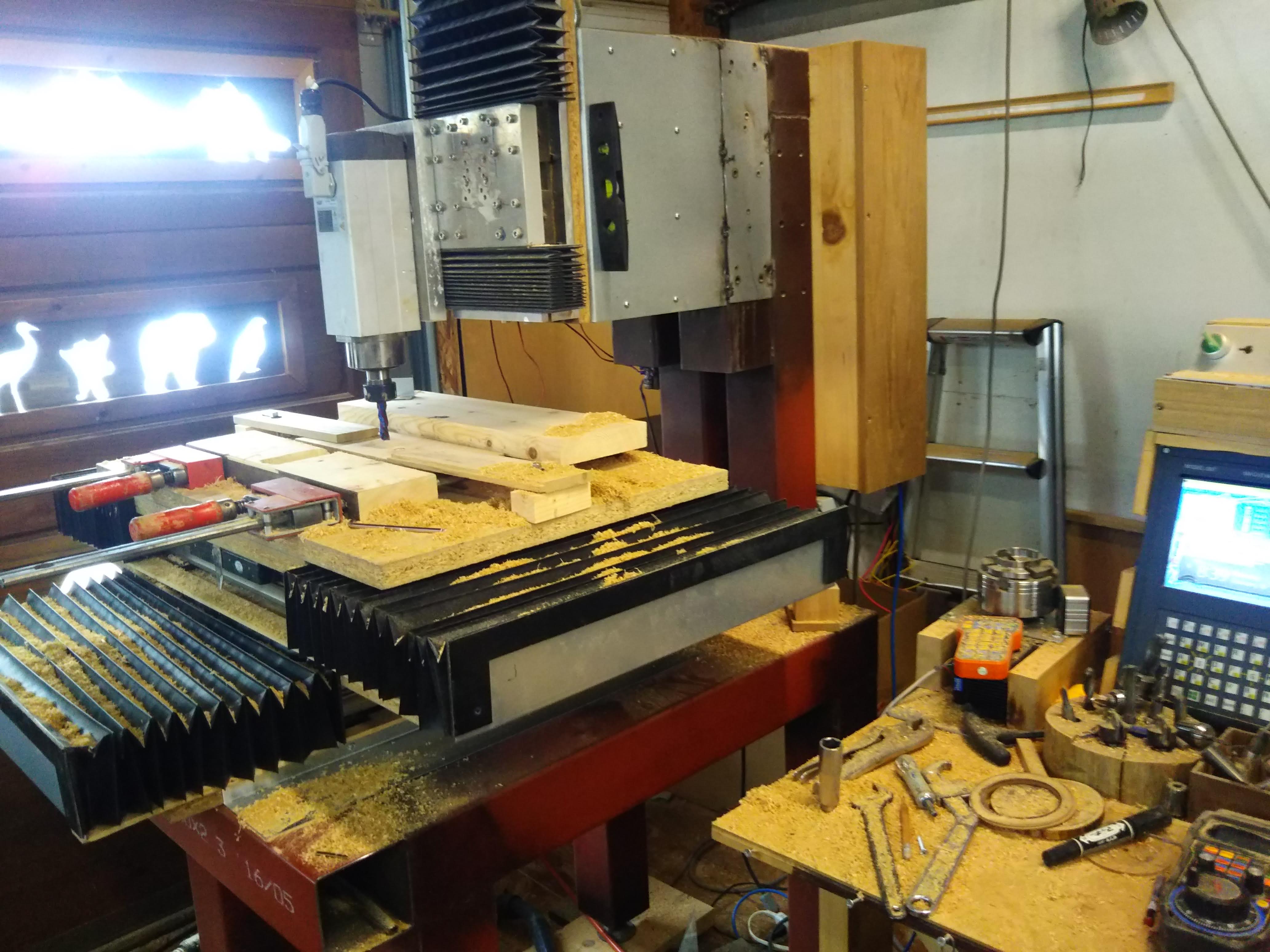 荷下ろしですがレーザー400キロの時はリースでユニック、CNC370キロの時は近所でユニック借りて、今回は200キロと軽量なので自作の門型に500キロ...
