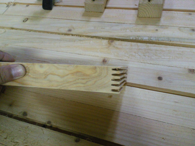 もらった桧は長さがたりないのでフィンガージョイント接合にした。