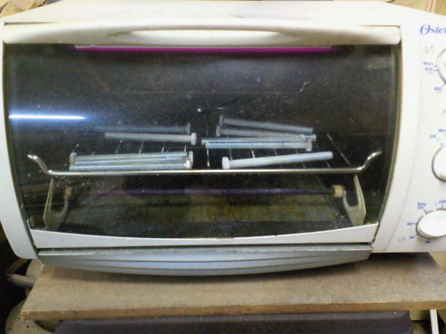 粉を静電気でふりかけ、オーブントースターで15分焼くだけでめっちゃ硬くなる。